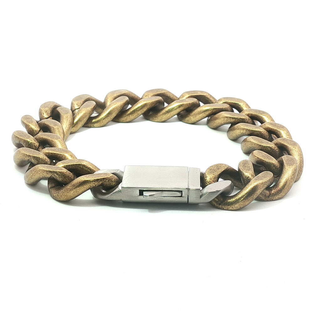 Mens Stainless Steel Bevelled Curb Bracelet in Plated Matte Bronze Gold 21cm