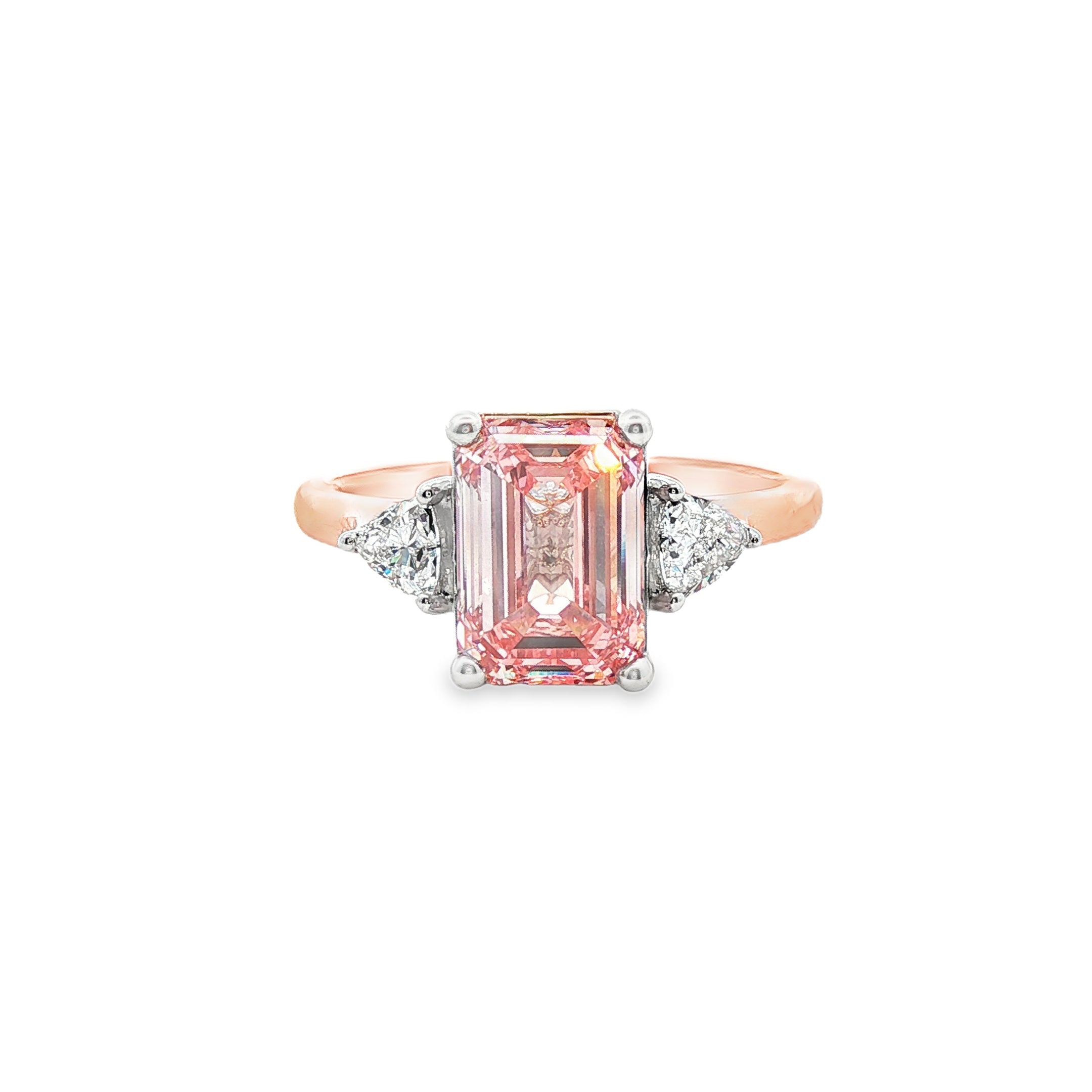 18ct Rose & White Gold Claw Set Pink and White Lab Grown Diamond Trilogy Ring – TDW 2.43ct
