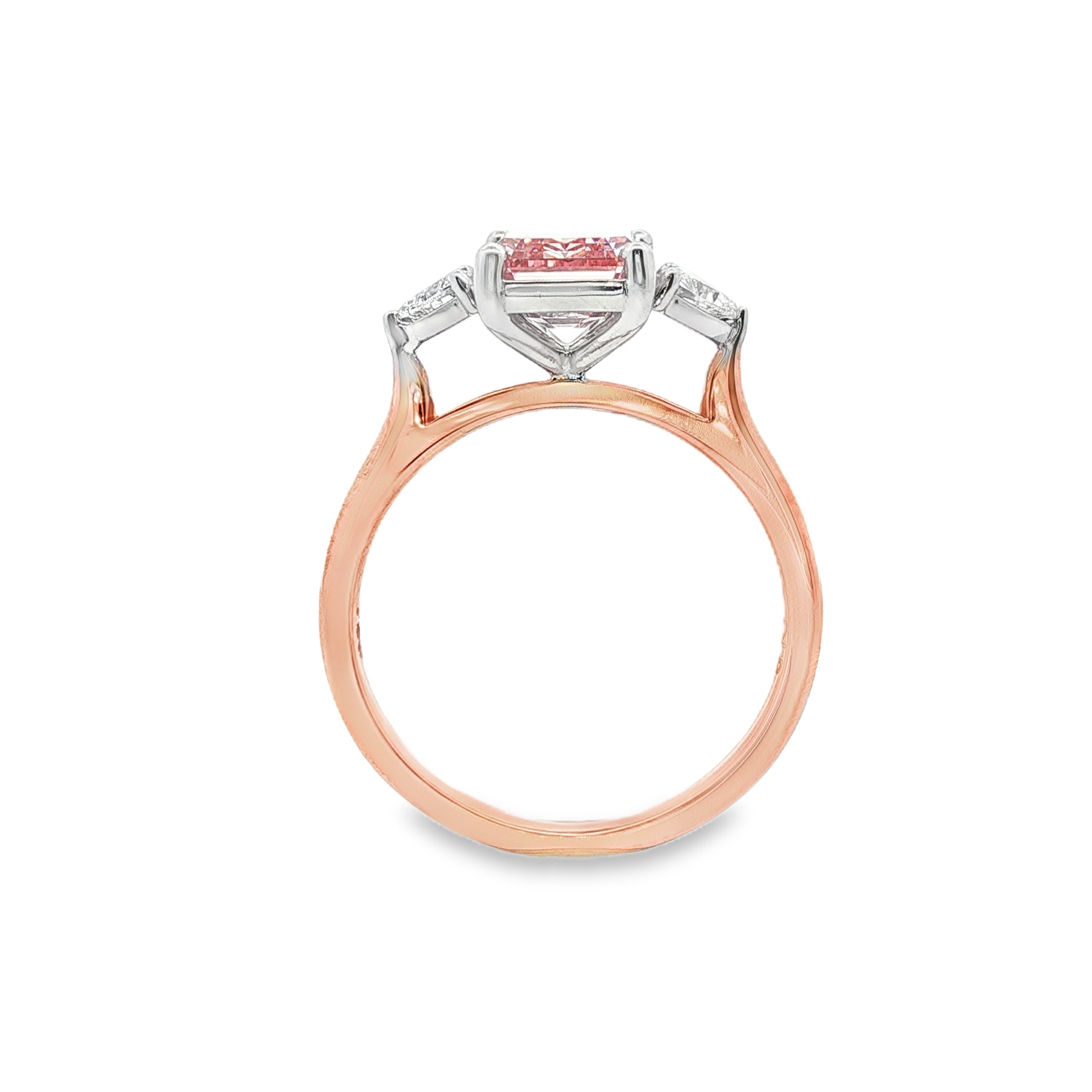 Centre Stone: Fancy Intense Pink Emerald Cut Lab Grown Diamond, 2.16ct, VS1