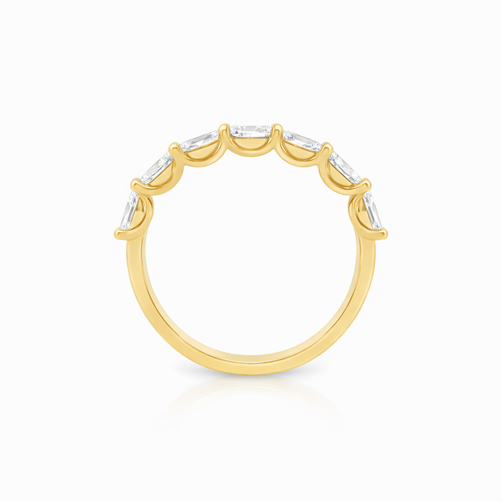 Introducing our elegant 9ct Yellow Gold Oval Lab-Grown Diamond Wedding Band. Featuring seven oval cut lab-grown diamonds totalling approximately 0.75ct, this timeless design is crafted in a shared claw setting to maximise brilliance and maintain a refined silhouette. Perfect as a wedding band or a statement stackable piece.
