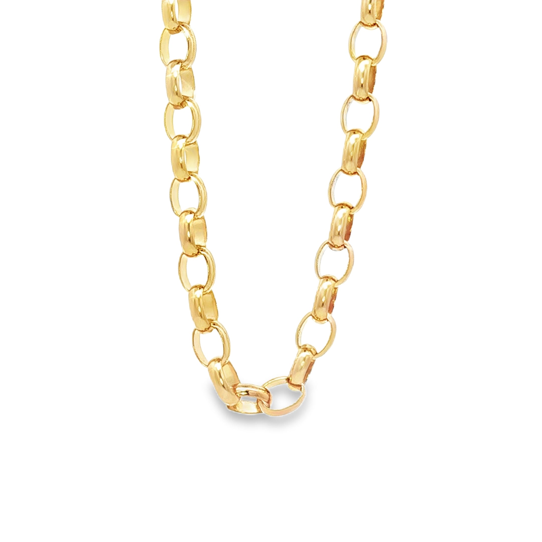 9ct Yellow Gold Round Belcher Chain with Swivel Clasp – 50cm