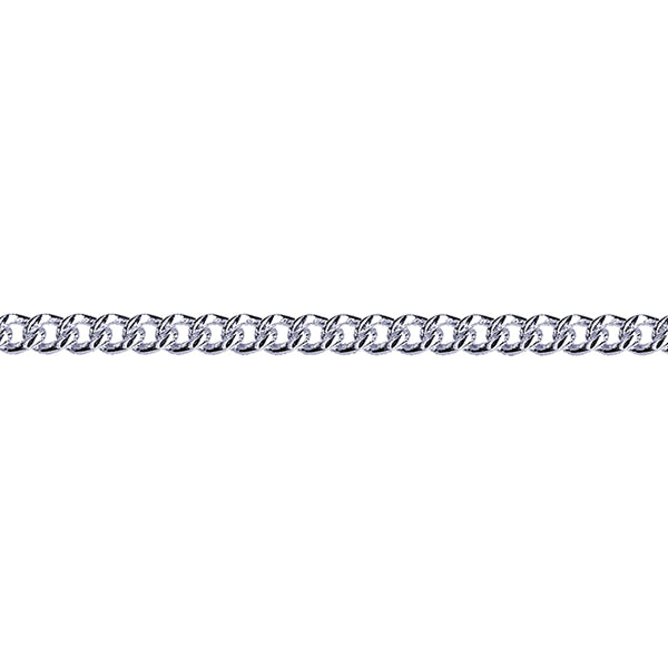 This sterling silver curb chain measures 55cm in length and features flat, closely interlocking links with a polished finish. The longer length makes it suitable for wearing on its own or with a pendant. A classic chain style designed for everyday use.