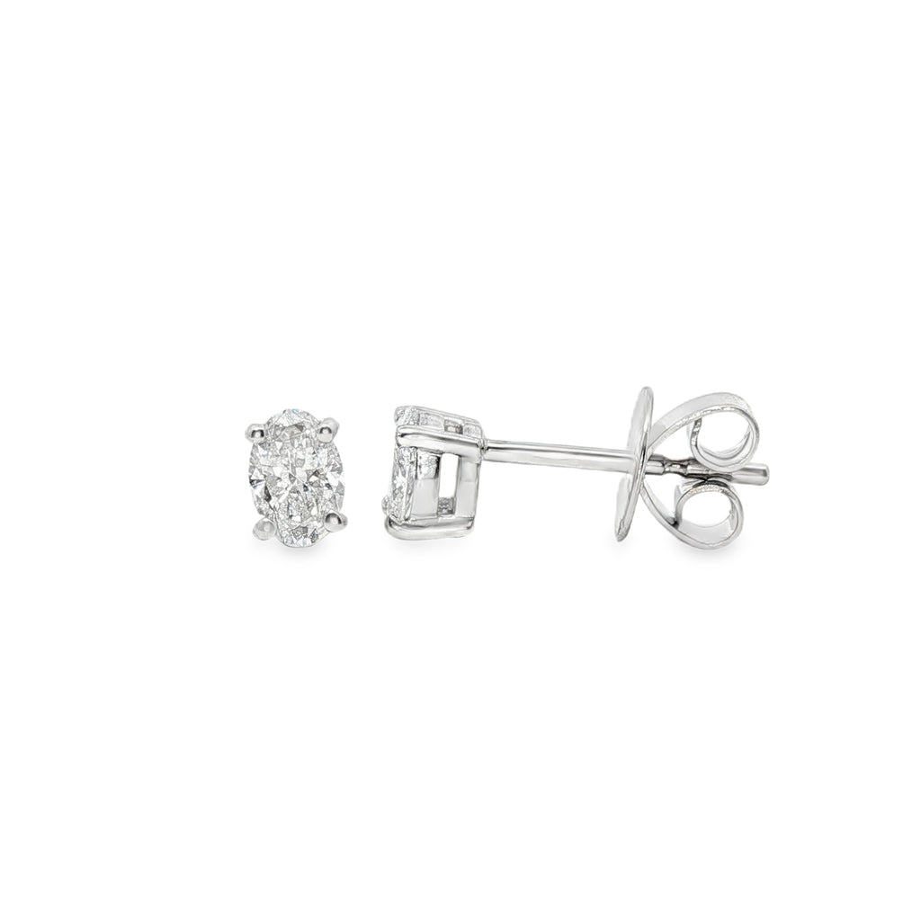 These elegant 9ct white gold stud earrings feature two oval cut lab grown diamonds with a total weight of approximately 0.50ct. Each stone is set in a classic 4-claw setting to showcase their brilliance and sparkle. A timeless design perfect for everyday luxury or special occasions.