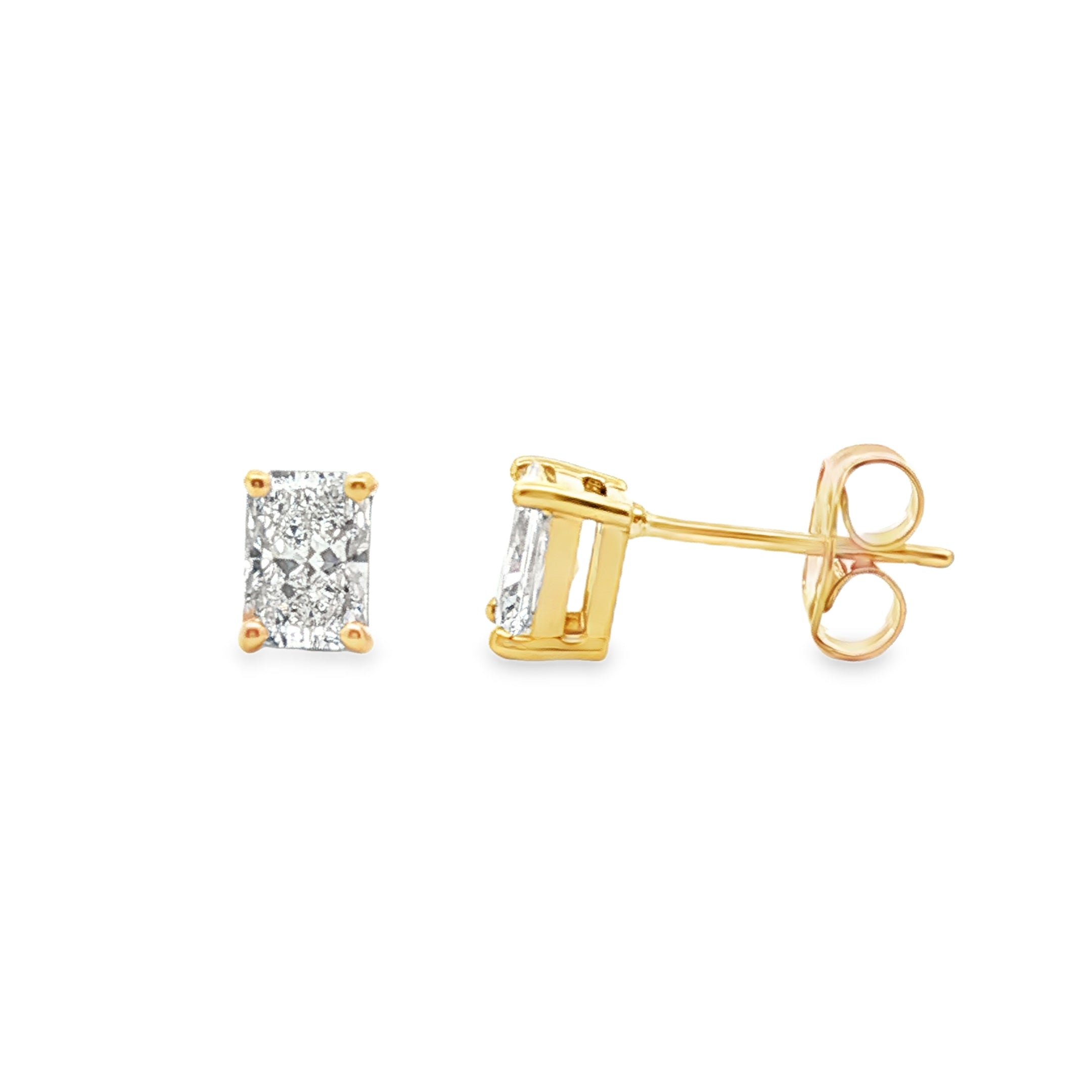 9ct Yellow Gold 4 Claw Set Radiant Cut Lab Grown Diamond Stud Earrings – 1.07ct TDW