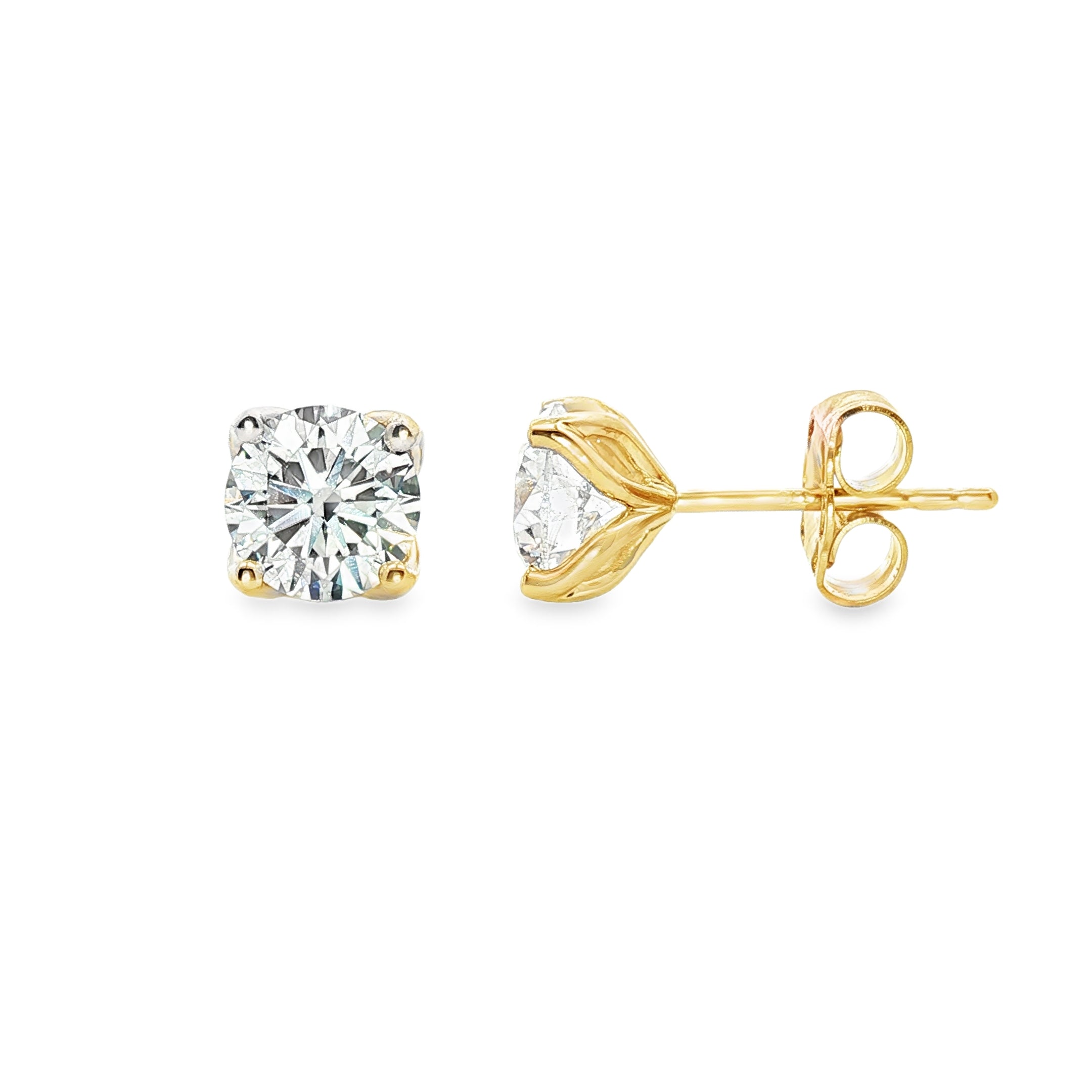 9ct Yellow Gold Tulip 4-Claw Set Round Lab Grown Diamond Earrings – TDW 2.00ct