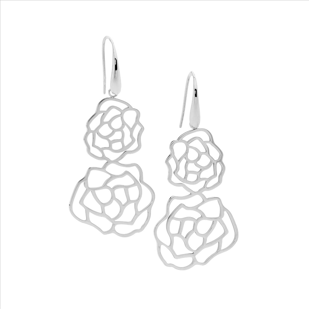 Stainless Steel dbl flower earrings, shp/hook SE253S