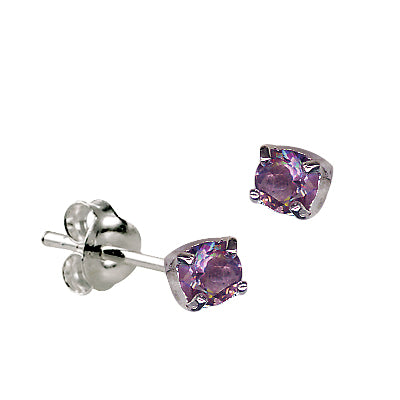 These sterling silver 4mm stud earrings feature cubic zirconia stones claw set to represent the February birthstone. Small and lightweight, they are designed for comfortable everyday wear and add a subtle touch of colour and sparkle. A versatile pair that complements both fine and fashion jewellery collections.