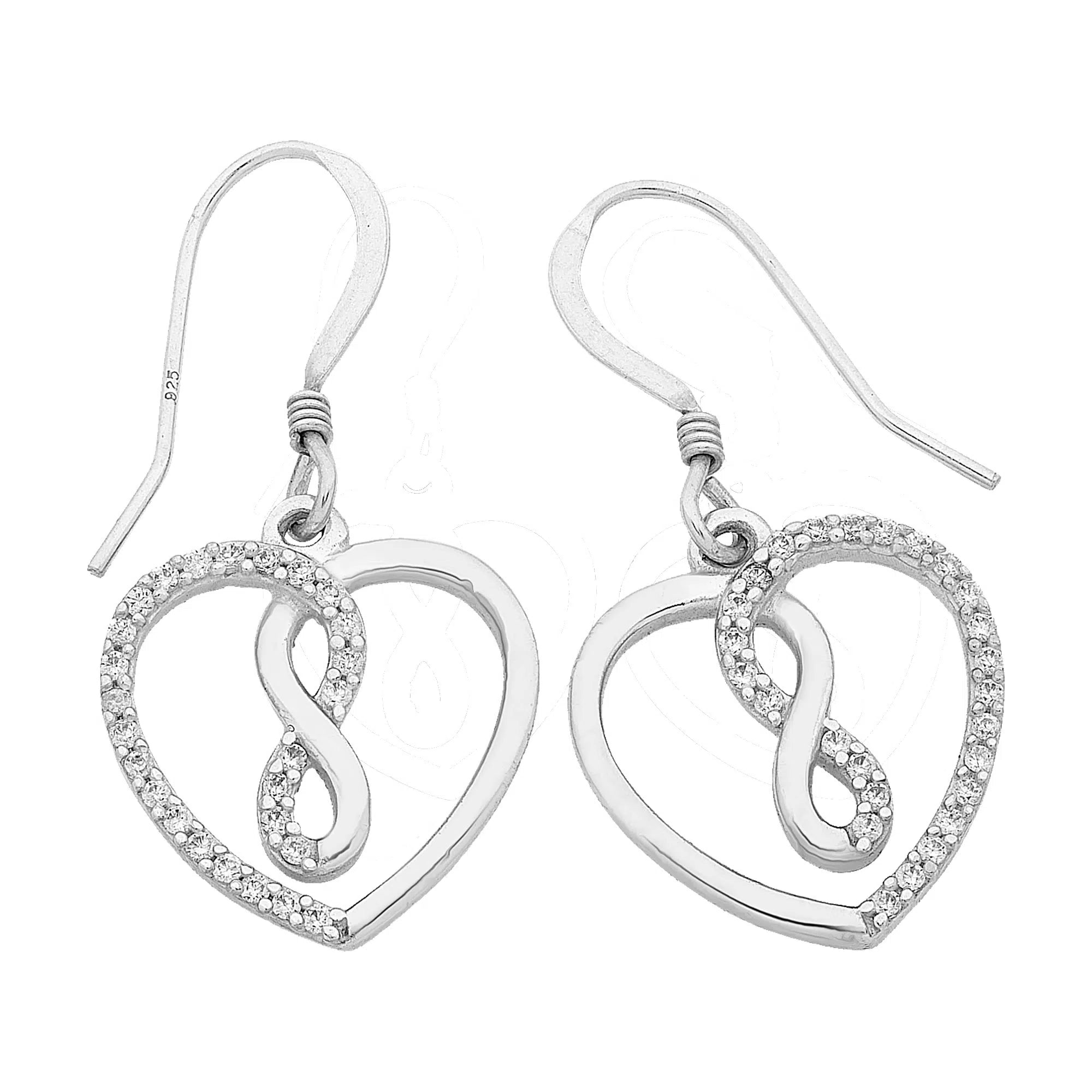 Cubic Zirconia Heart and Infinity Shaped Sterling Silver Earrings