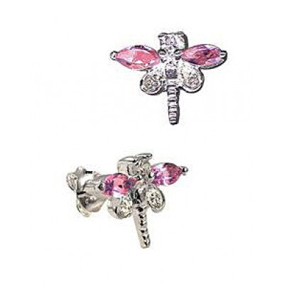 Sterling Silver Pink Cubic Zirconia Dragonfly Stud Earrings