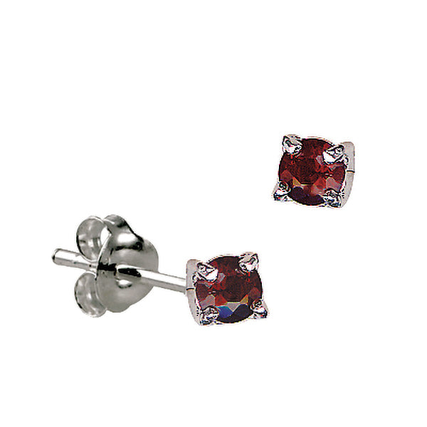 These sterling silver stud earrings feature 4mm crystal stones claw set to represent the January birthstone. The open claw setting allows light to reflect from the stone while maintaining a secure fit. A classic birthstone stud design suited to everyday wear.