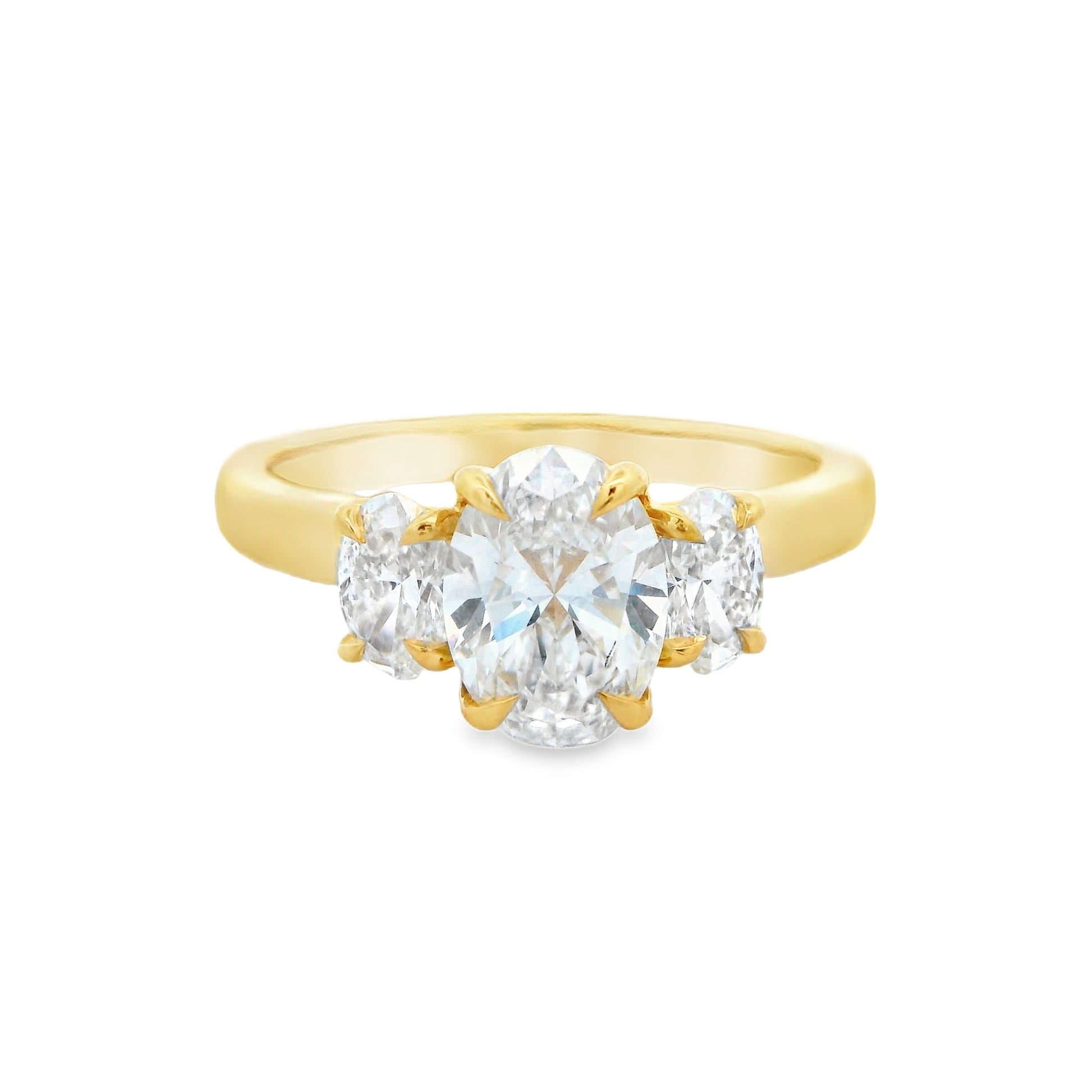 18ct Yellow Gold Oval Lab Grown Diamond Trilogy Ring – TDW 1.52ct