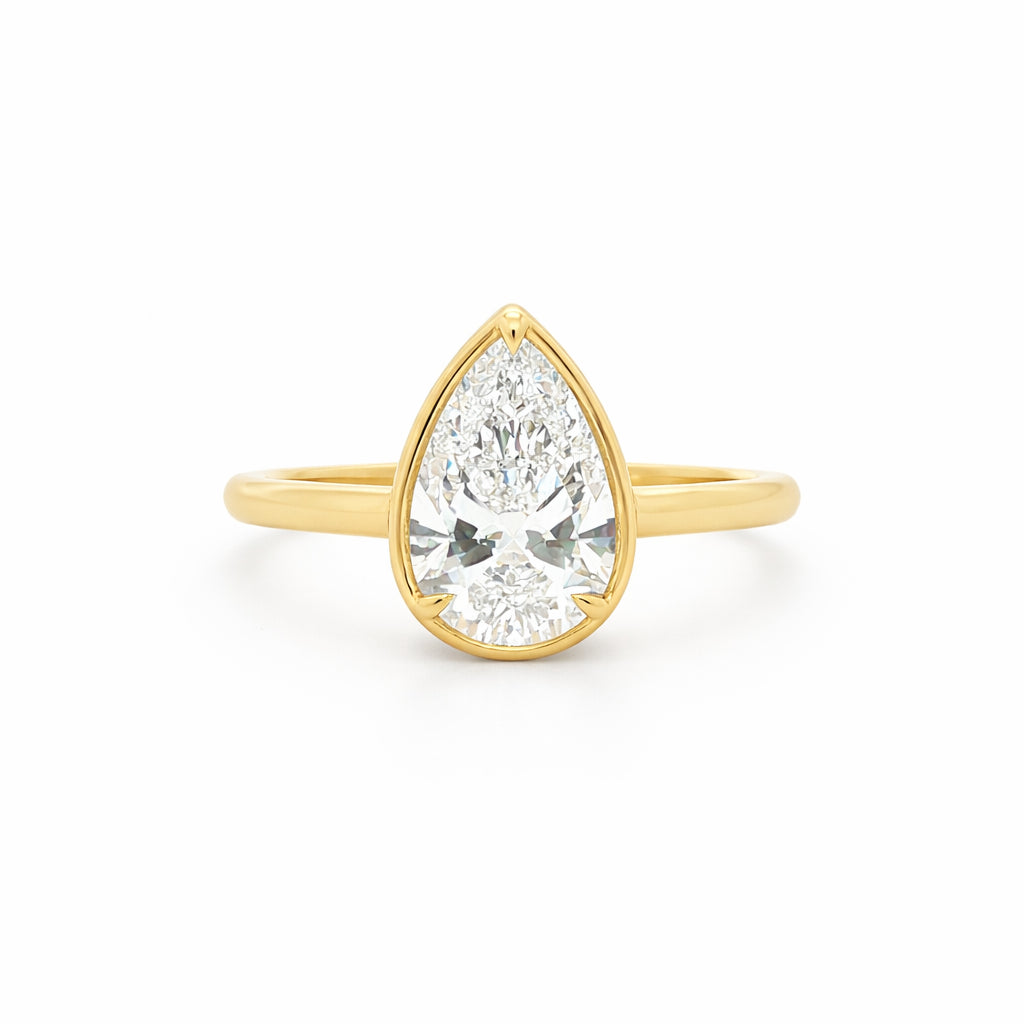 9ct Yellow Gold 4 Eagle Claw Set Pear Cut Lab Grown Diamond Georgian Style Solitaire Ring – 2.04ct TDW