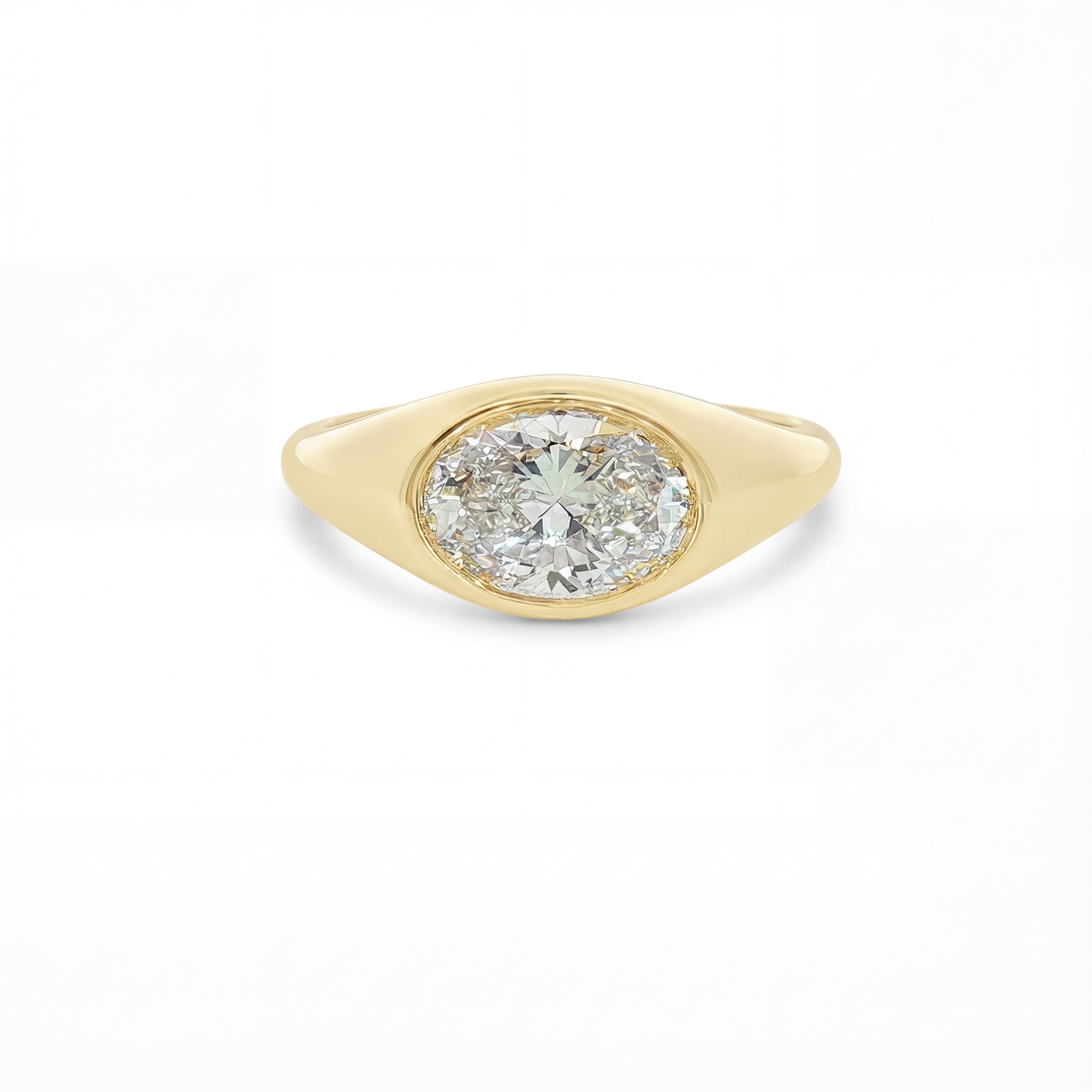 9ct Yellow Gold Bezel Set Oval Lab Grown Diamond Ring – TDW 1.50ct