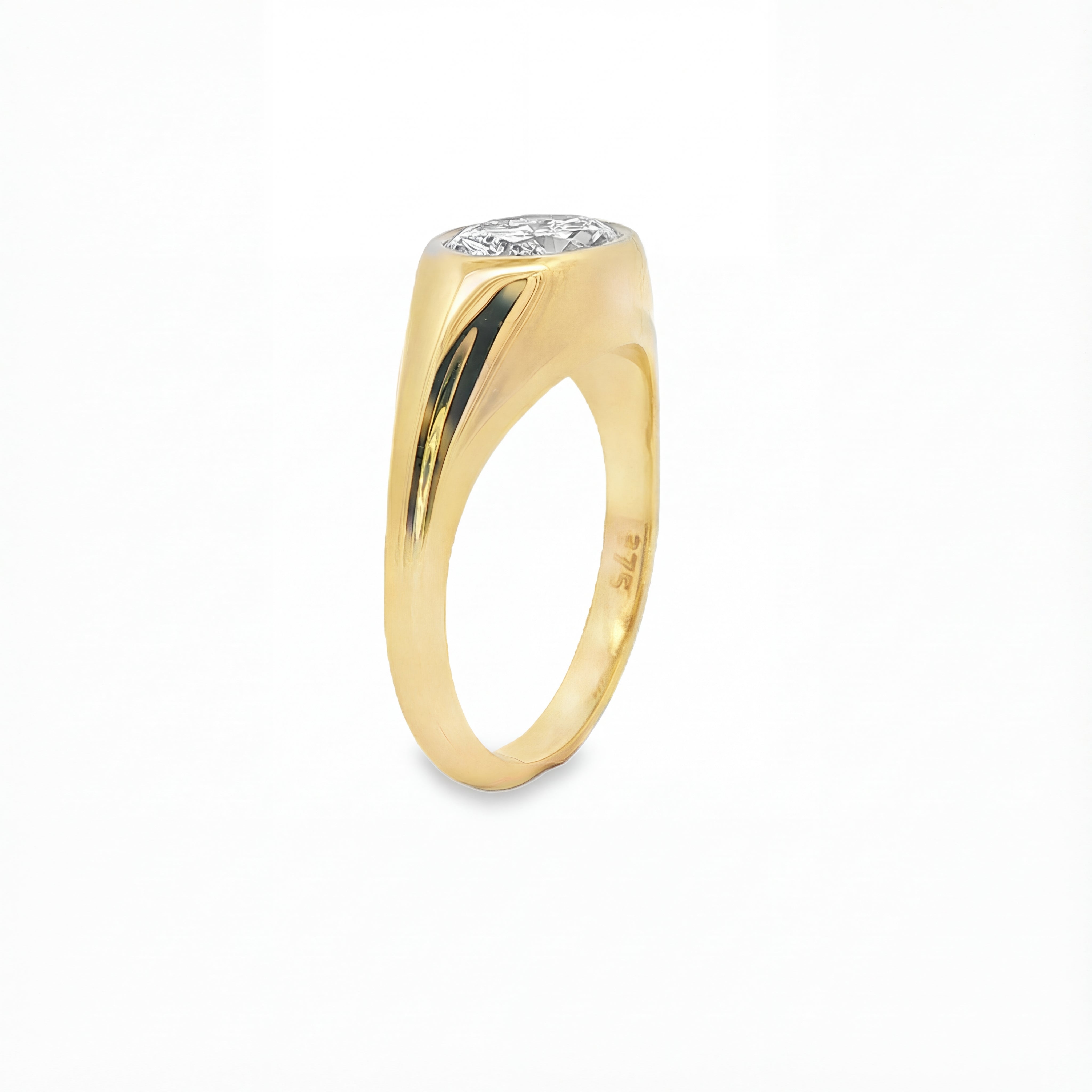A bold and modern statement piece, this wide shoulder ring features a 1.50ct oval cut lab grown diamond, bezel set for a sleek and secure finish. Crafted in warm 9ct yellow gold, the solitaire diamond shines with D colour and VS1 clarity, delivering maximum brilliance in a clean contemporary silhouette.