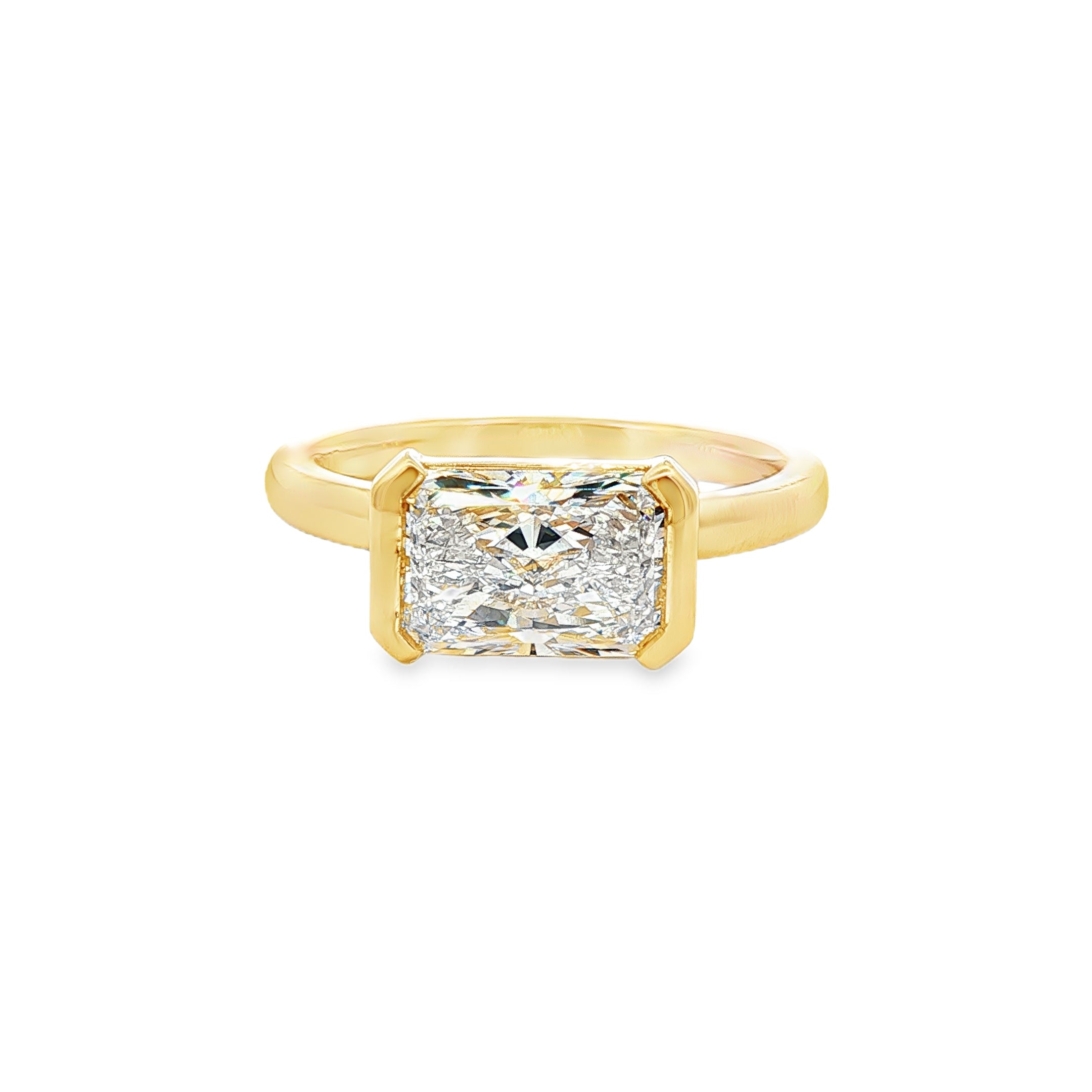 9ct Yellow Gold Half Bezel Set East-West Radiant Cut Lab Grown Diamond Ring – TDW 2.02ct
