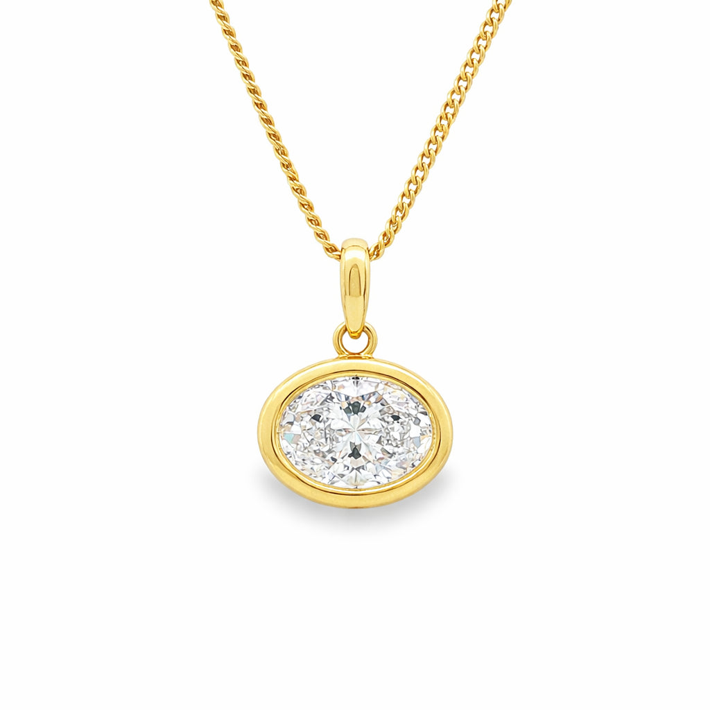 9ct Yellow Gold Bezel Set Oval Cut Lab Grown Diamond Pendant – 2.01ct TDW