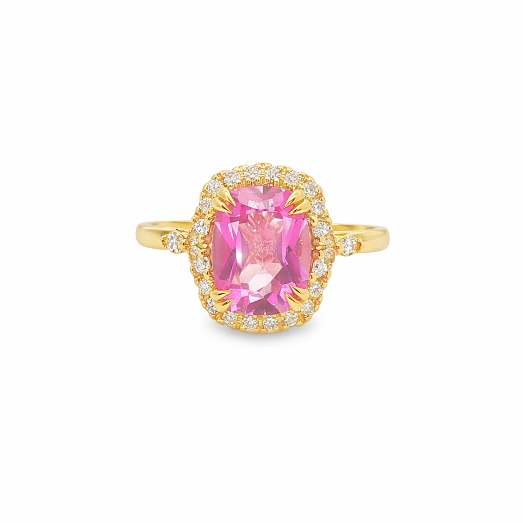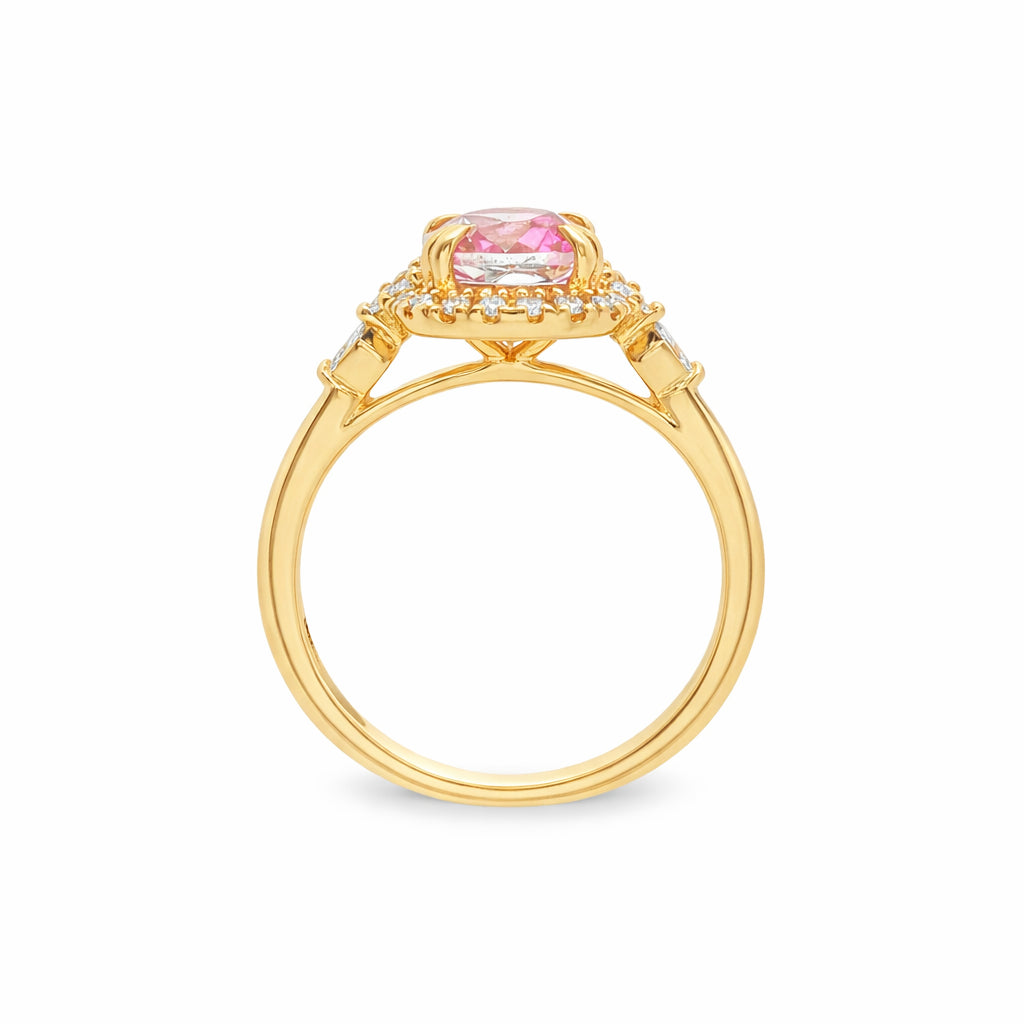 9ct Yellow Gold Pink Tourmaline & Lab Grown Diamond Halo Ring – 0.32ct TDW