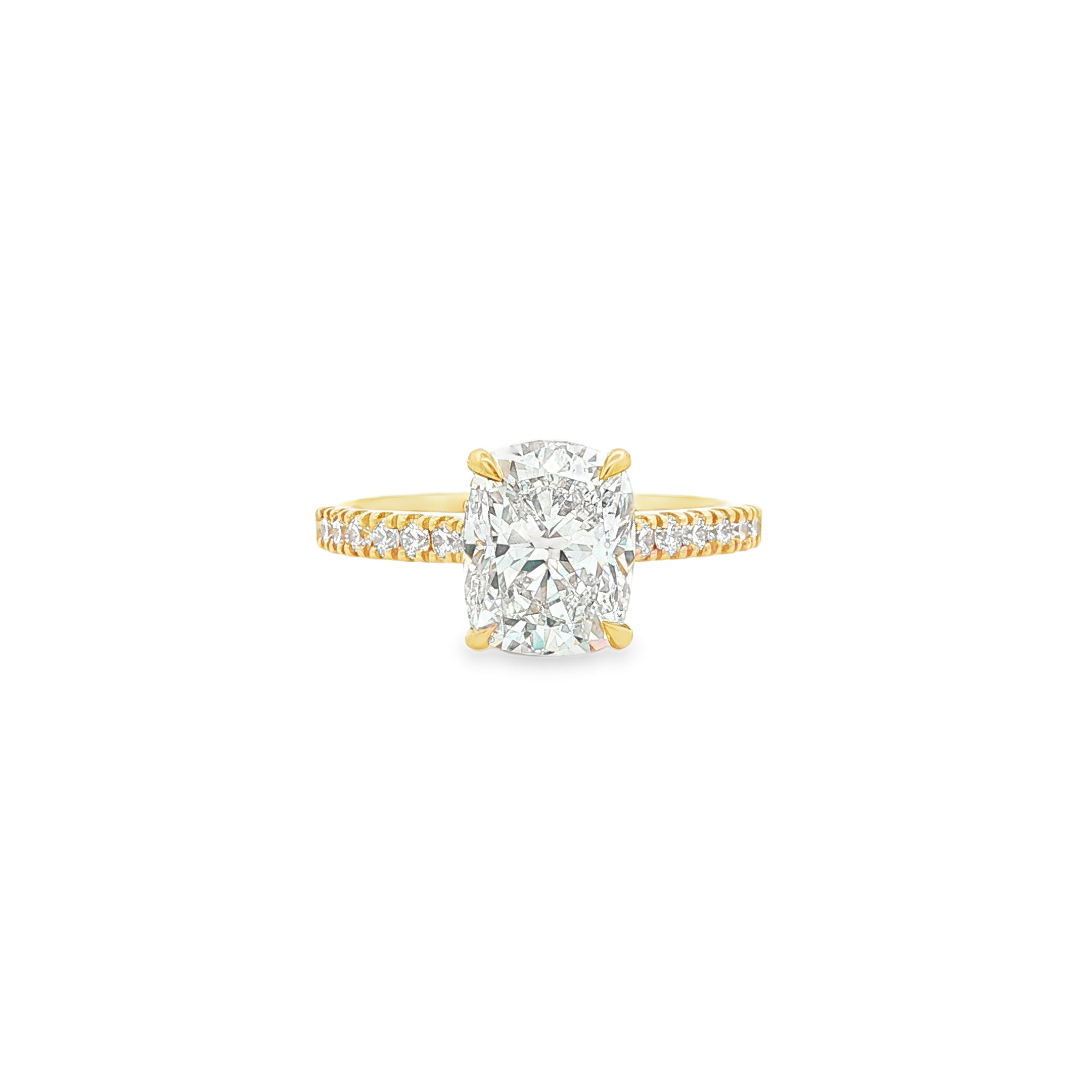 18ct Yellow Gold 4 Eagle Claw Set Elongated Cushion Lab Grown Diamond Ring with Hidden Halo – 2.93ct TDW