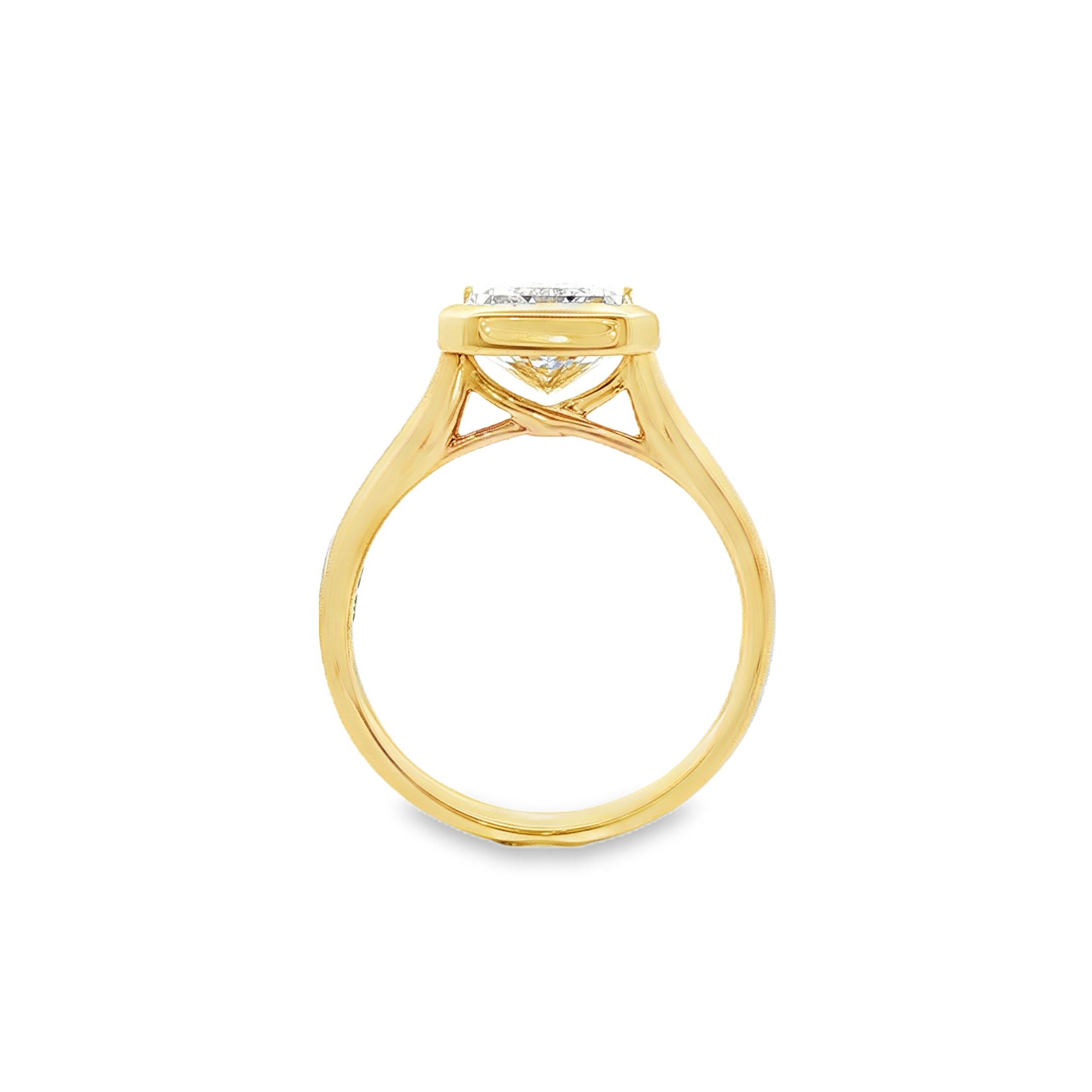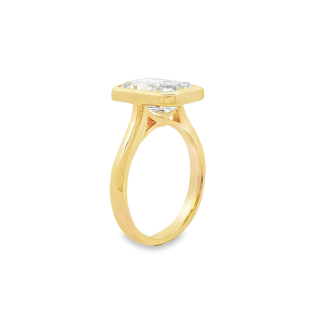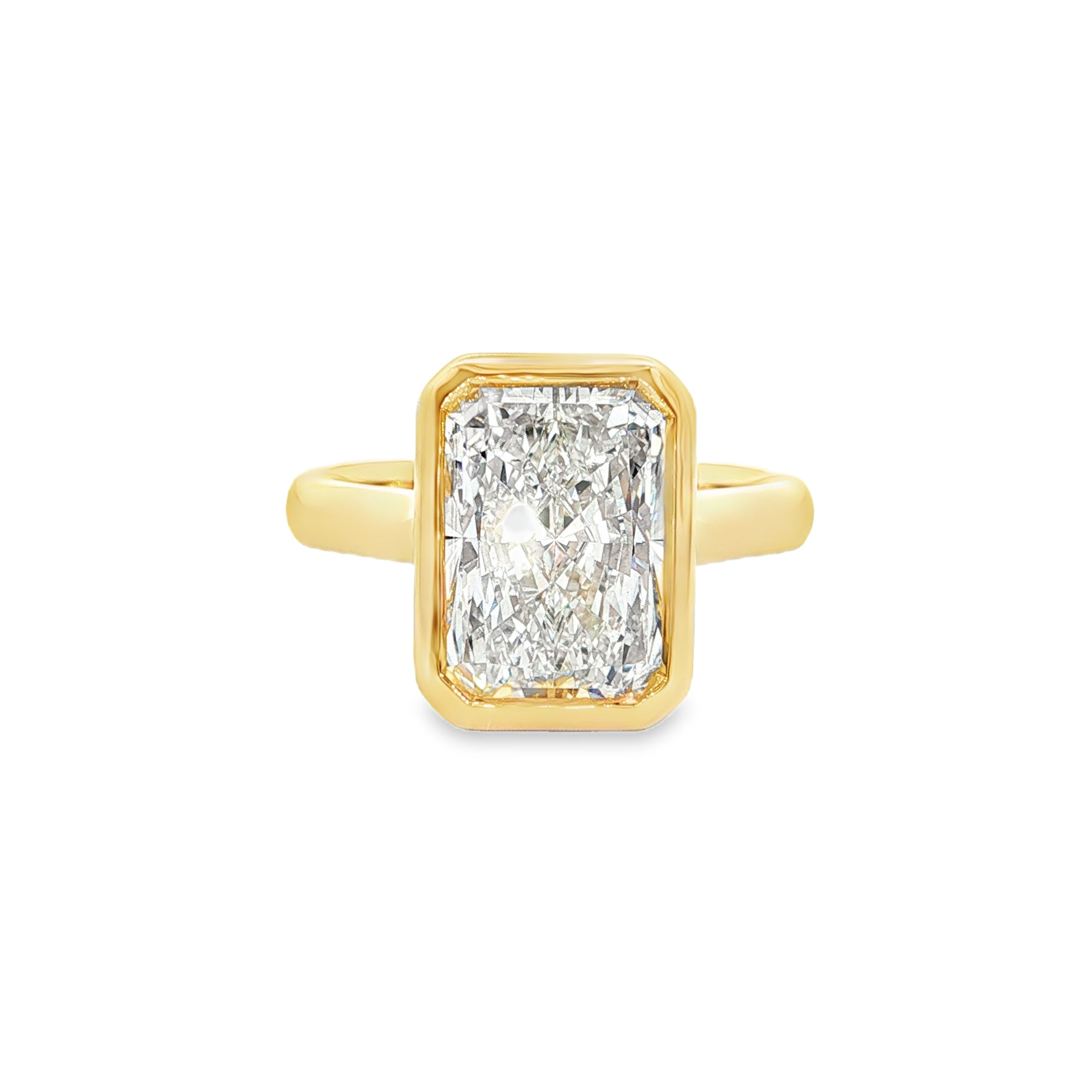 9ct Yellow Gold Radiant Cut Lab Grown Diamond Bezel Set Solitaire Ring – TDW= 4.03ct