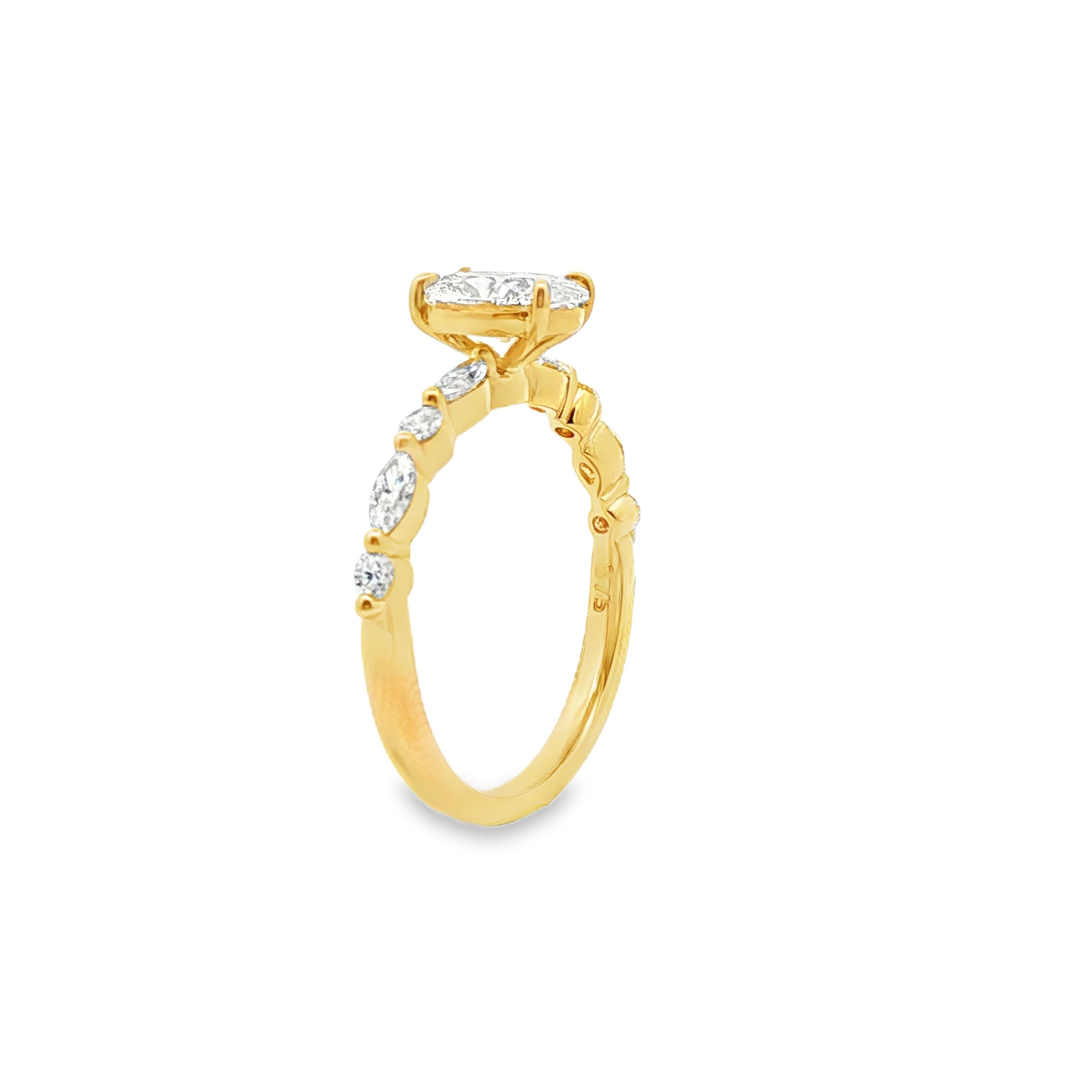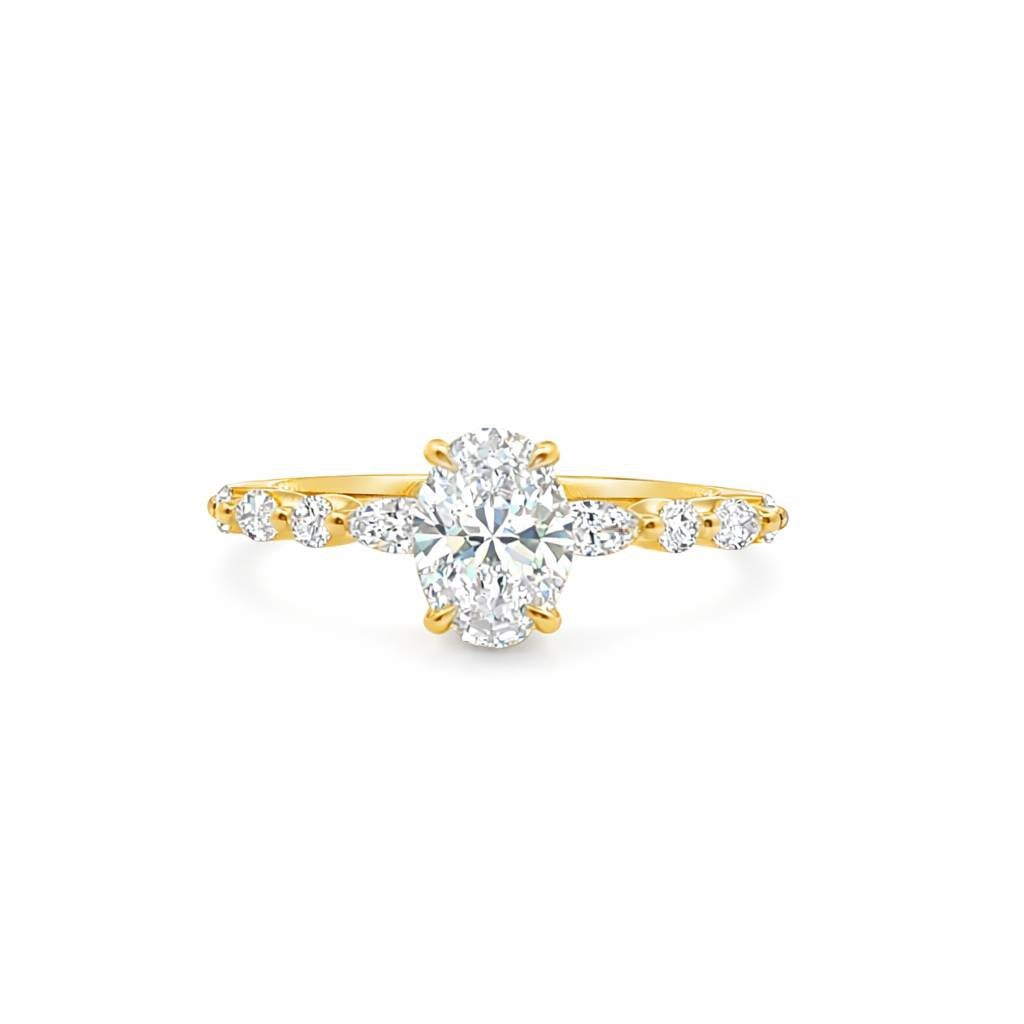 9ct Yellow Gold Oval Cut Lab Grown Diamond Ring with Round and Marquise Shoulders – 1.35ct TDW