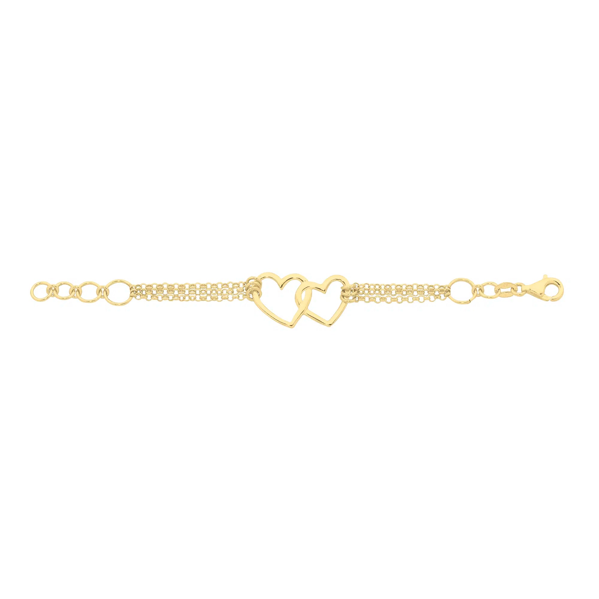 9ct Gold Plated Sterling Silver Double Heart Bracelet