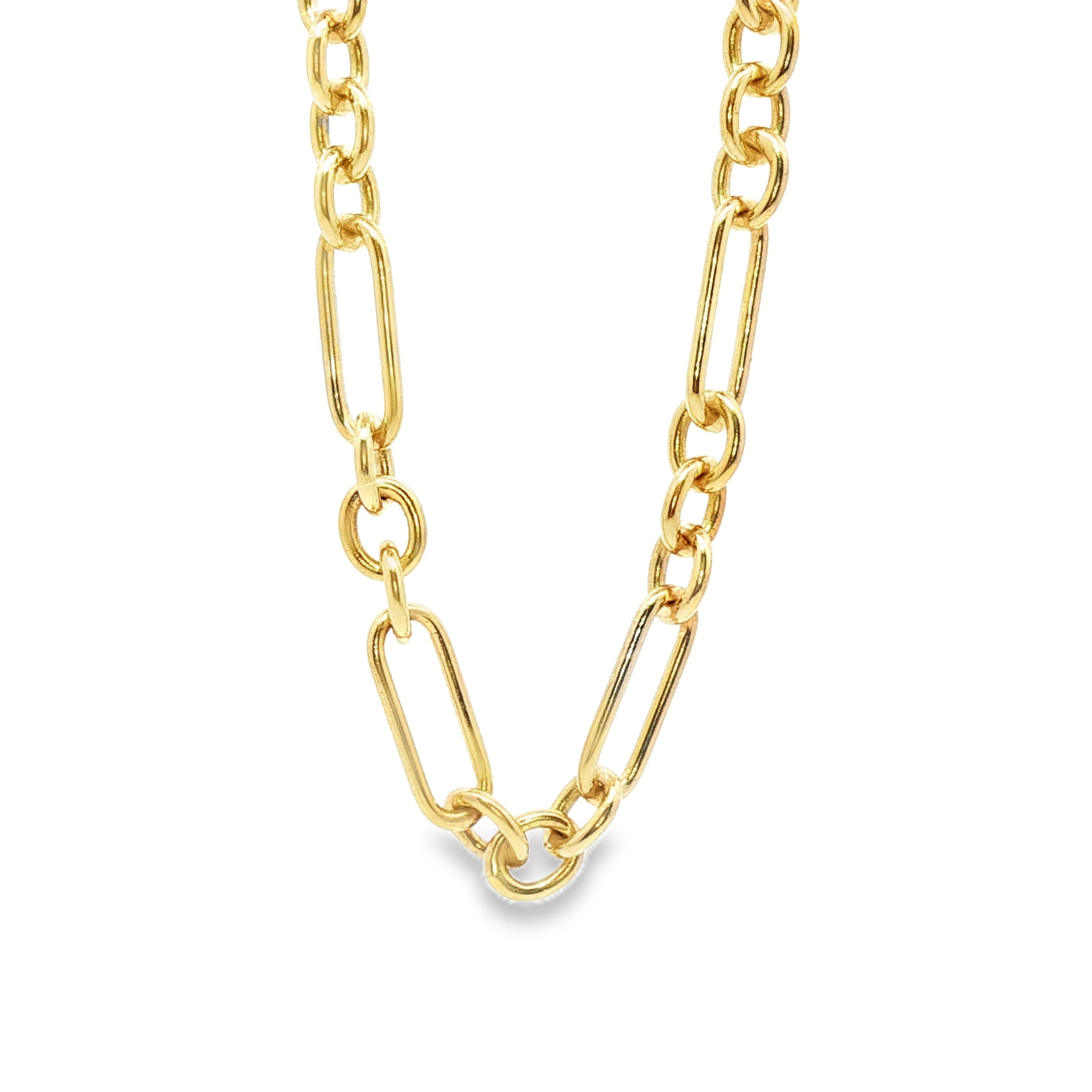 Crafted from solid 9ct yellow gold, this 3+1 chain features a striking pattern of three round links followed by one elongated oval link. The alternating design offers both texture and elegance, finished with a practical swivel clasp for ease of wear.
