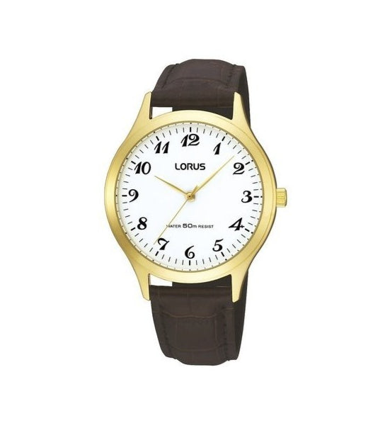 Classic style meets everyday functionality with this Lorus Regular Men's Watch. Featuring a timeless white dial housed in a gold-plated stainless steel case and finished with a rich brown leather strap, this watch offers a refined look perfect for both work and weekend wear. Its reliable quartz movement and 50M water resistance make it a practical choice for daily use.