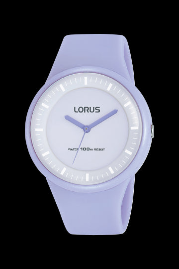 Embrace simplicity and style with the Lorus Woman Plastic Watch (RRX23FX9). This analog timepiece features a 38mm plastic case, creating a lightweight and comfortable design. The white dial, adorned with a lilac-colored silicone strap secured by a buckle closure, exudes elegance. The curved acrylic glass adds a touch of sophistication, while the reliable quartz movement ensures accurate timekeeping. With a fixed caseback held by four screws and a water resistance of 10 ATM, this watch effortlessly combines durability and fashion for everyday wear.