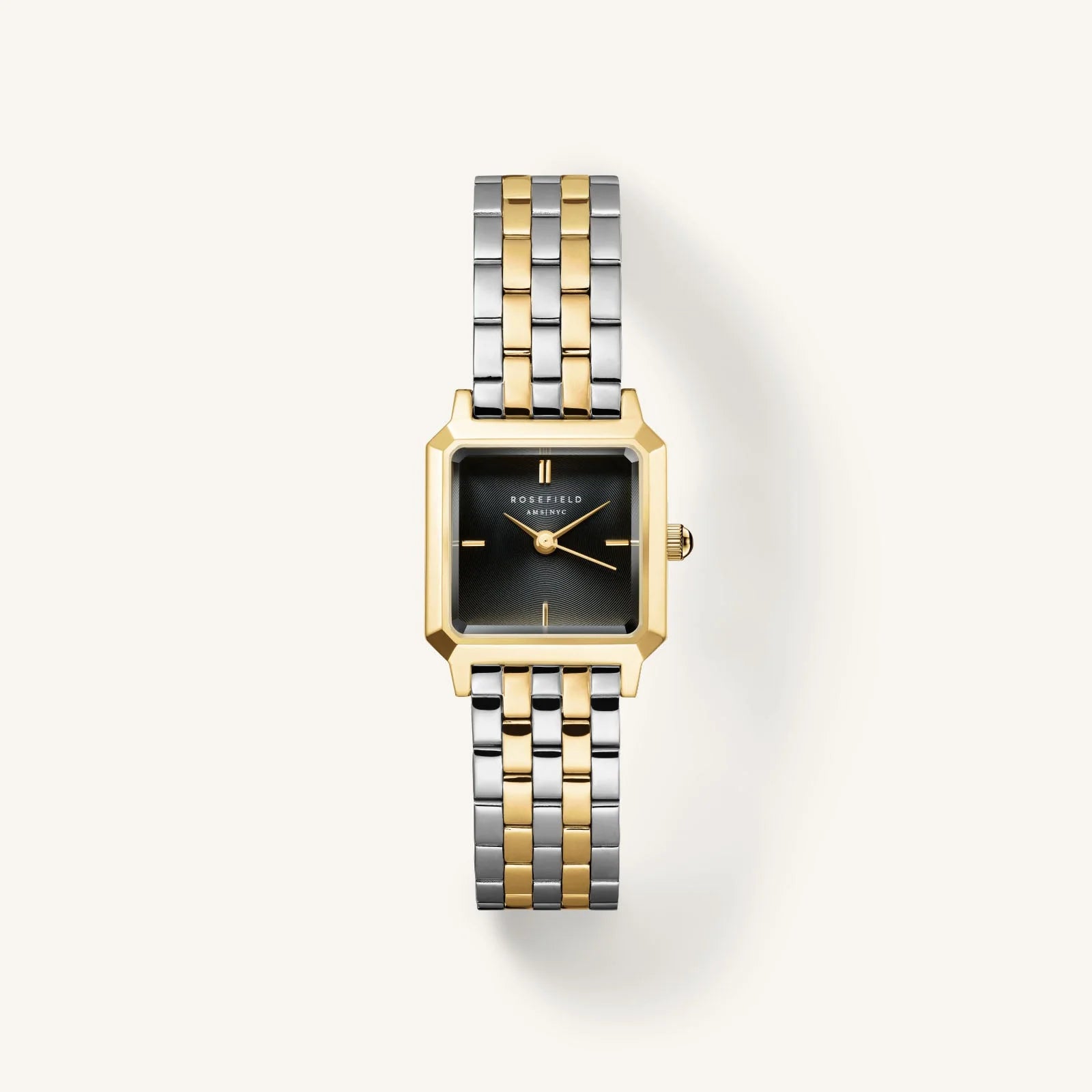 This Rosefield Small Edit watch blends classic elegance with contemporary style, perfect for those who love versatile, fashion-forward accessories. Featuring a 19.5 x 19.5mm gold-and-silver brass case and a sleek black CD sunray etched dial, this timepiece offers a refined look suitable for any occasion. Its interchangeable strap options provide flexibility, making it a stylish addition to any wardrobe.